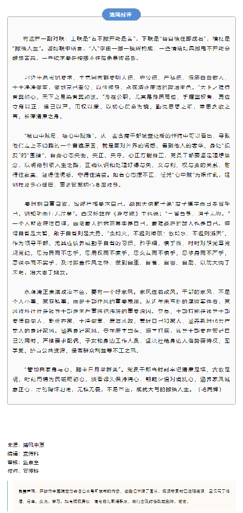 【廉洁教育】清风时评 | 修身立德 实干笃行
